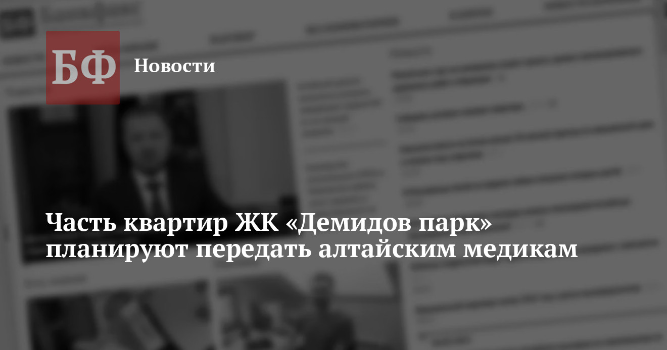 В пресс-службе Минстройтранса Алтайского края подтвердили, что подчиненное им региональное жилищное управление (занимается покупкой квартир для льготных категорий граждан) планирует выкупить квартиры в ЖК «Демидов Парк» и передать их региональному минздраву. Те, в свою очередь, смогут заселить в них медиков, которых будут приглашать на работу в противотуберкулезный диспансер, когда его достроят. По словам министра строительства, транспорта, жилищно-коммунального хозяйства Алтайского края Ивана Гилева предварительно речь идет о сумме в 200 млн рублей, однако пока не ясно точное количество квартир, которые предстоит купить в «Демидов Парке». В Минстройтрансе Алтайского края ИА «Банкфакс» заявили, что не готовы распространяться о каких-либо подробностях проекта, пока соответствующие аукционы не будут объявлены.