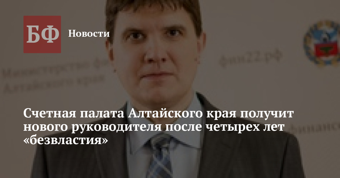 Замминистра финансов Алтайского края Виктор Миненок с большой долей вероятности станет новым председателем Счетной палаты региона. Об этом у себя на странице в Facebook написал депутат Алтайского Заксобрания Александр Молотов. Должность была вакантной с 2013 года.