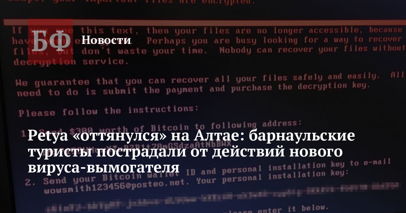 Несколько организаций Алтайского края почувствовали на себе последствия атак новых зловредных компьютерных программ, которые распространяются по миру под условными названиями Petya и его модификациями. В частности, туристические агентства Барнаула вынуждены вносить изменения в схему своей работы: из-за атак некоторые документы приходится оформлять вручную и отправлять горожан отдыхать без полного пакета, сообщает ГТРК «Алтай».