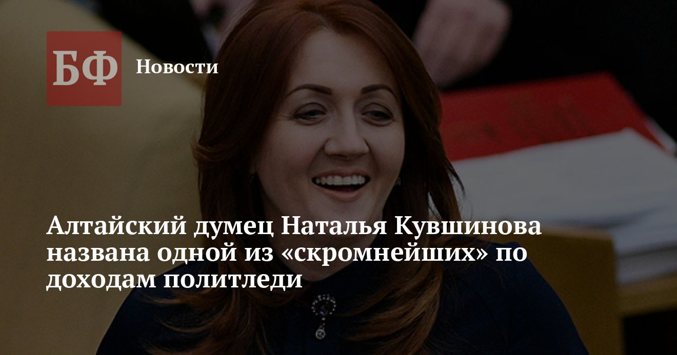 Депутат Госдумы от Алтайского края Наталья Кувшинова признана одной из «беднейших» по доходам женщин в российской власти по версии «Ленты.ру». Ее даже близко нельзя ставить в один ряд с другими женщинами-думцами, сенаторами, чиновницами правительства и Кремля, следует из рейтинга издания. Впрочем, в месячном выражении она все равно получает в разы больше средней зарплаты по Алтайскому краю.