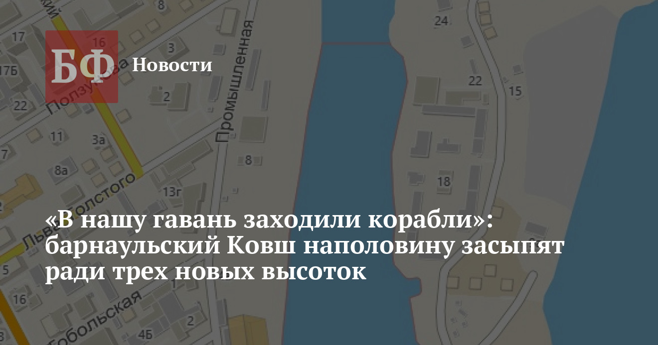 15 июля на офсайте администрации Барнаула было размещен проект «разрешения на создание искусственного земельного участка на водном объекте». Речь идет о части барнаульской гавани (так называемого Ковша). Данная территория давно не используется по прямому назначению. За последние годы сюда все ближе подбирается жилищная застройка. В частности речь идет о ЖК «Новая пристань» (дома по улицам Приречная и Промышленная). Более того, земля с обеих сторон Ковша также распределена. Формально разрешение на то, чтобы засыпать часть гавани подавало ООО «Акватория». Согласно выписке из ЕГРЮЛ, барнаульское ООО зарегистрировано в марте 2015 года по адресу: улица Пролетарская, 56. Директор и единственный учредитель — Анна Самарина. Уставный капитал составляет 10 тысяч рублей. Основной профиль — строительство жилых и нежилых зданий. В документе на офсайте мэрии руководителем компании значится Валерий Керат.