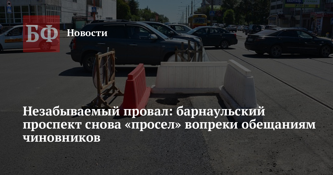 17 июля днем в Барнауле на пересечении проспекта Красноармейский и улицы Молодежной в очередной раз образовался провал рядом с трамвайными путями, следует из сообщения пресс-центра городской админстрации. Местные чиновники вновь стали на защиту дорожников, списав происшествие на «силы земли».