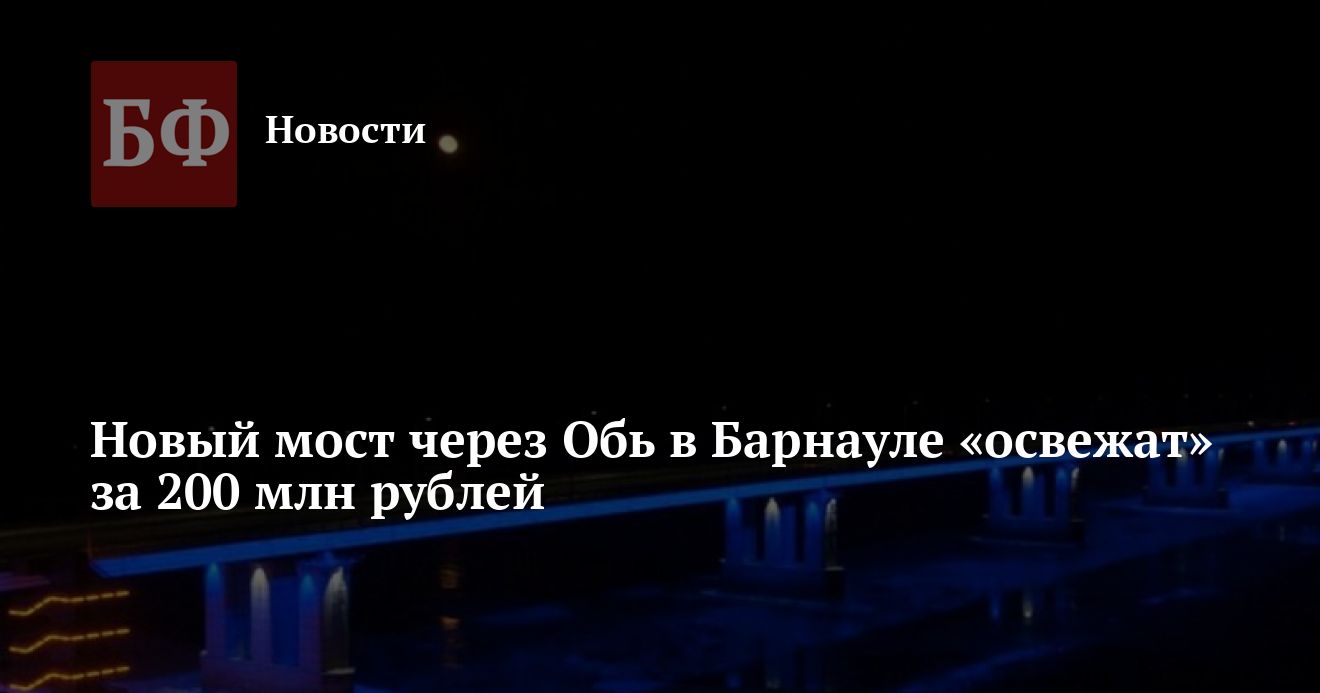 На обновление и покраску Нового моста через Обь в Барнауле, который накануне отметил 20-летие, из бюджета Алтайского края выделят 200 млн рублей. Об этом сообщается на сайте правительства Алтайского края со ссылкой на начальника Алтайавтодора Василия Мотуза.