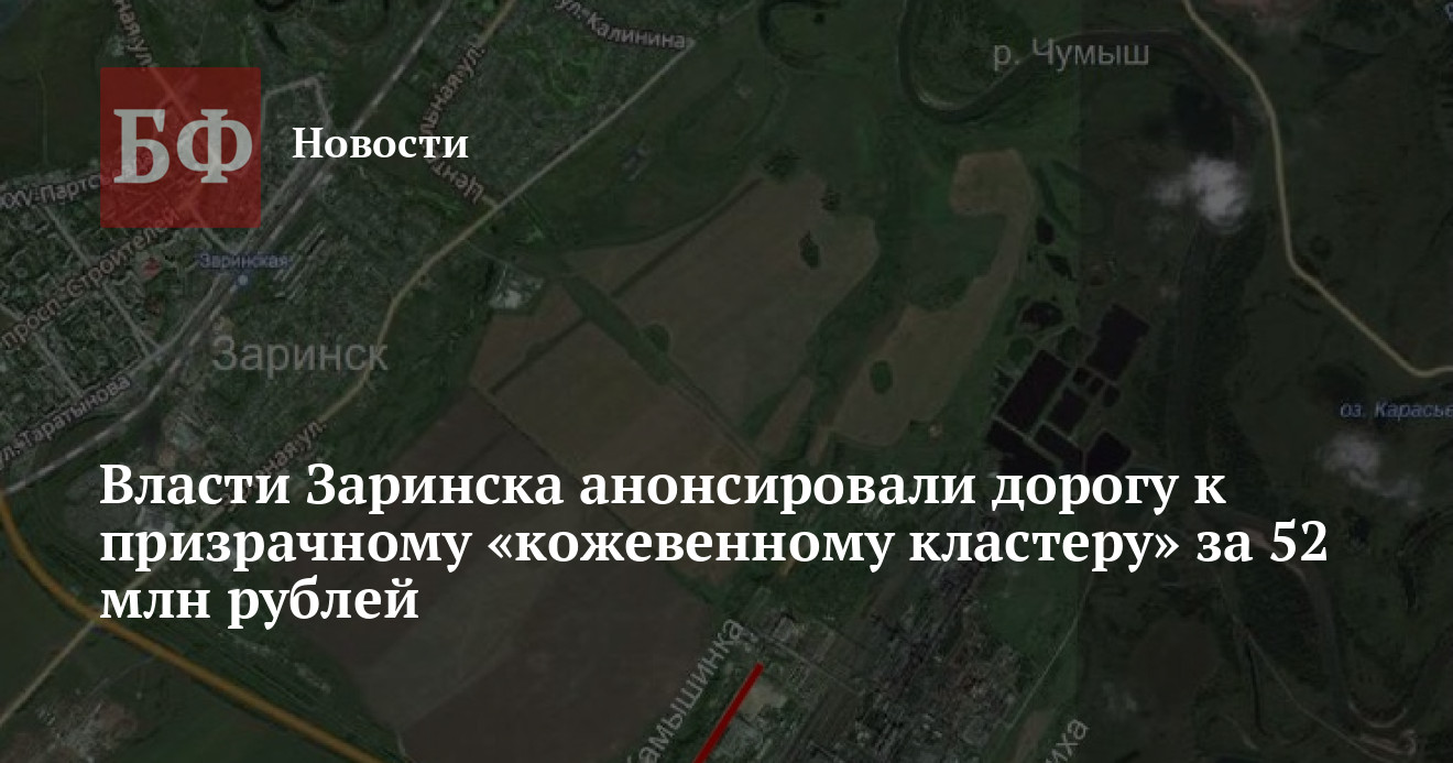 Комитет по экономике и управлению муниципальным имуществом администрации Заринска ищет подрядчика для строительства подъездов к несуществующей пока фабрике ООО «Русская кожа Алтай» (РКА), которая по задумке краевых властей должна стать центром будущего «кожевенного кластера» в регионе. На дорогу из бюджетов трех уровней планируется потратить 52,5 млн рублей, вместе с тем в начале августа сроки запуска кожевенного производства были сдвинуты более чем на год — минимум до конца 2018 года.