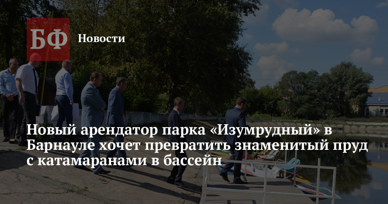 Новый арендатор барнаульского парка «Изумрудный» — компания «Лидер» — представил главе администрации краевого центра Сергею Дугину свои планы по развитию территории. Среди прочего ожидается, что знаменитый пруд в центре парка исчезнет, а на его месте появится бассейн под открытым небом. Об этом сообщается на сайте администрации Барнаула.