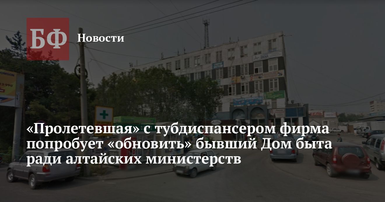 Власти Алтайского края намерены потратить 178 млн рублей на ремонт бывшего Дома быта по улице Попова, 68 в районе Докучаево. Сейчас площади пятиэтажного здания занимают региональные Минюст, Минобр, Управление ЗАГС, а также архив судебных участков Индустриального, Ленинского и Октябрьского районов Барнаула. Единственным участником аукциона стало ООО «Новострой», которое ранее уже выиграло аукцион на достройку краевого тубдиспансера в Новоалтайске, но власти отказались заключать контракт, сказано на сайте Госзакупок.