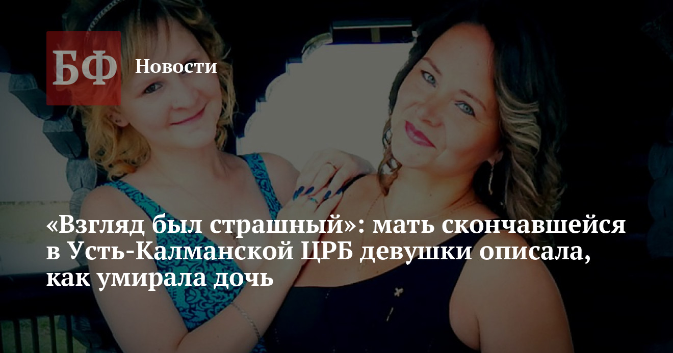 Юлия Казначеева, мать 23-девушки, скончавшейся в Усть-Калманской районной больнице, считает, что врачи действительно оказали пациентке некачественную медпомощь и повинны в ее смерти. Как указывает женщина, ее дочери не предоставили реанимобиль, который мог бы доставить болевшую диабетом девушку в Барнаул, а действия районных врачей привели лишь к ухудшению состояния погибшей. Ее рассказ приводит «Комсомольская правда — Барнаул».