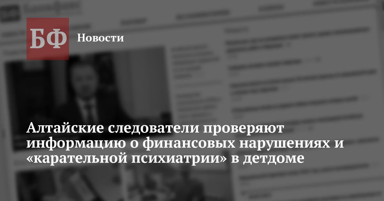 Группа следователей-криминалистов выехала в одно из социальных учреждений для детей-сирот и детей, оставшихся без попечения родителей в Алтайском крае, чтобы проверить распространенную СМИ информацию о превышении руководством должностных полномочий и тяжелой ситуации с бытом воспитанников. По результатам будет принято процессуальное решение, сказано на сайте СУ СКР по Алтайскому краю, подробности истории приводит ИА Regnum.