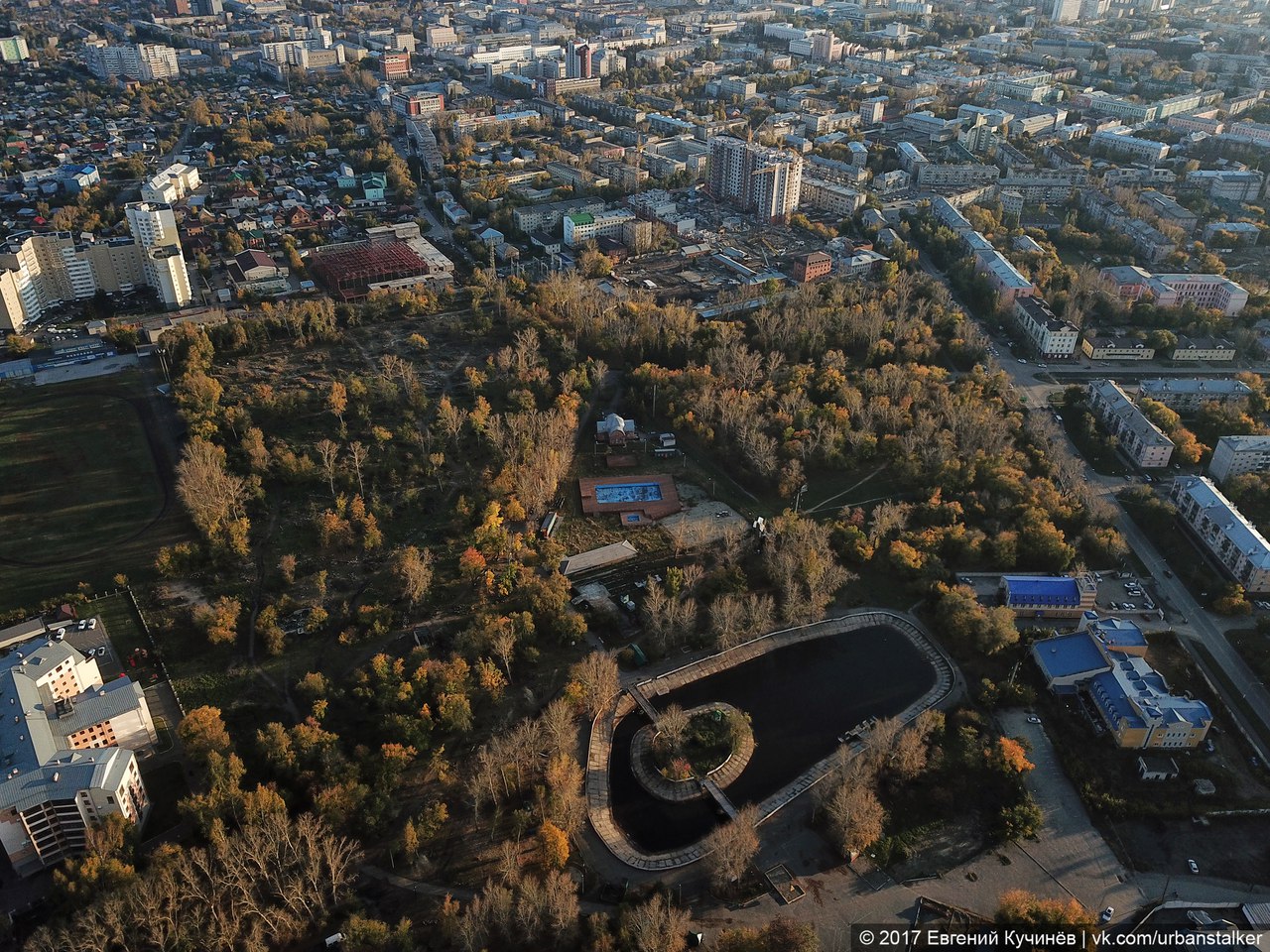 Несмотря на протесты общественников и депутатов парк «Изумрудный», похоже, лишился значительной части зеленых насаждений. Новый арендатор называет происходящее обновлением, однако горожане подозревают его в желании отдать участки под застройку. С земли масштаб рубок оценить достаточно сложно, однако барнаульский активист Евгений Кучинев с помощью квадрокоптера снял территорию с высоты птичьего полета и отметил на фото наиболее пострадавшие зоны.