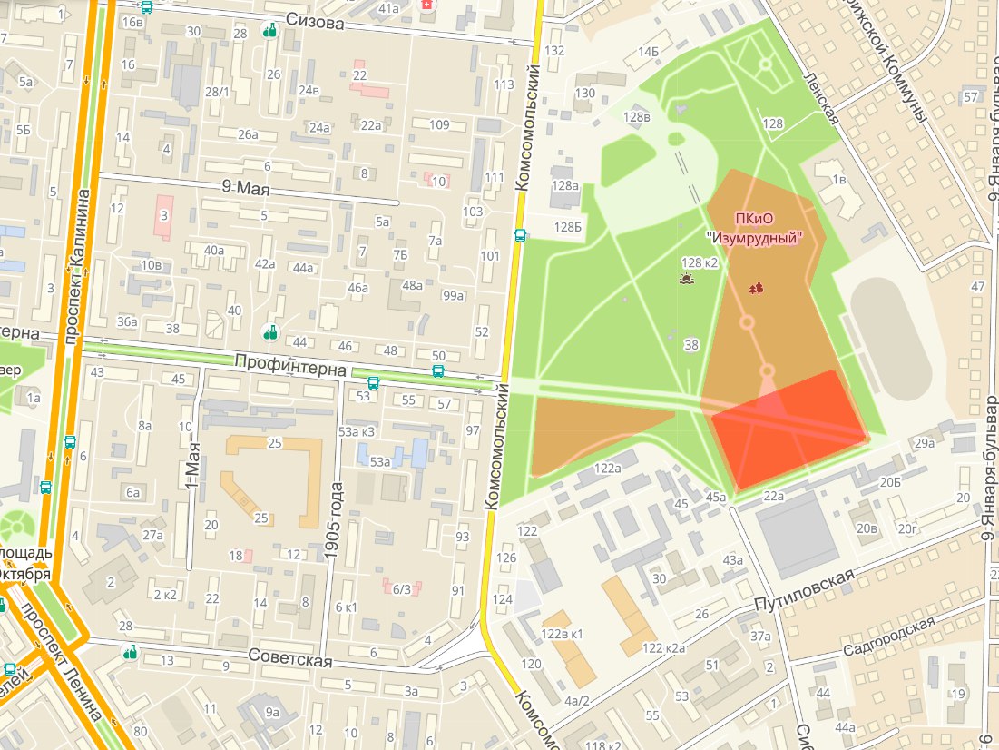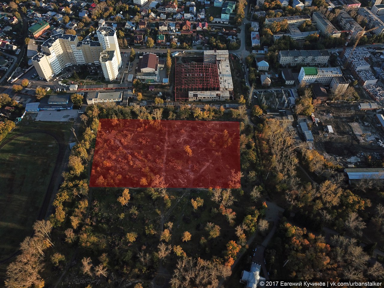 На одном кадре видно, что практически полностью схвачен периметр парка и поэтому площадь участка, подвергшегося вырубке, оценить не сложно. На других снимках отчетливо видно, что в юго-восточном углу парка расчищен прямоугольный периметр. «Наводит на мысли — а не готовится ли очередная стройплощадка? Примеров полно — строительство жилого дома в парке на Потоке, который изначально подавался общественности как соцобъект. Или снос кинотеатра „Первомайский“ ради строительства детского досугового центра — что там в итоге построили? Разумеется, торговый центр!», — написал Евгений Кучинев.