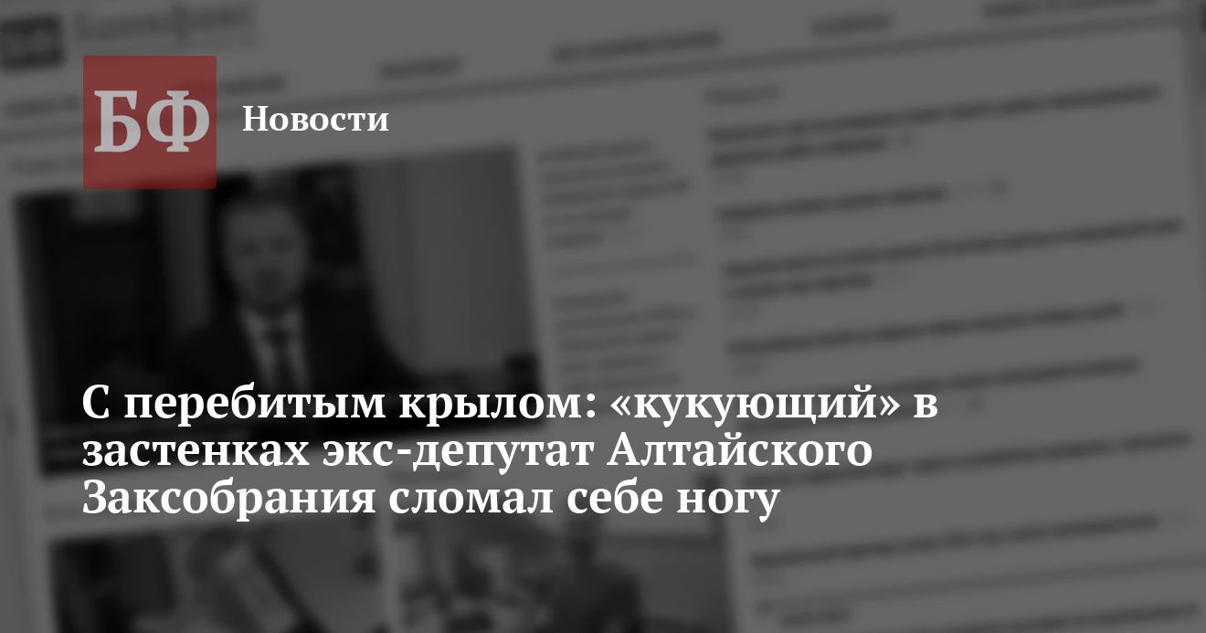 Экс-депутат Алтайского Заксобрания Александр Мастинин, также известный общественности под псевдонимом Валерий Грач и отбывающий наказание за присвоение и растрату в колонии Рубцовска, сломал себе ногу. Адвокат осужденного Елена Фогель сообщила, что он сделал это в знак протеста против дисциплинарных взысканий. Информацию об акте членовредительства ИА «Банкфакс» подтвердили в пресс-службе УФСИН по региону.