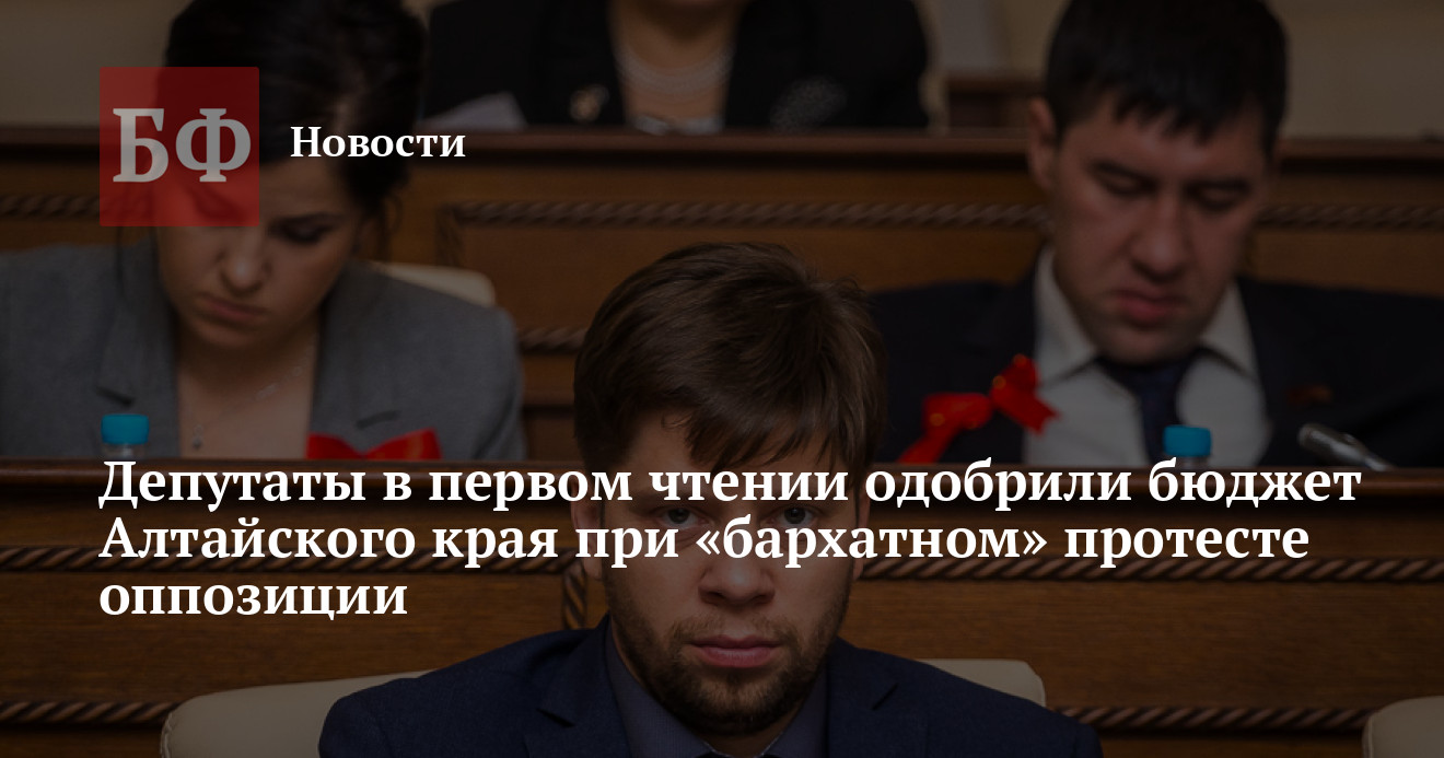 На очередной 13-й сессии Алтайского Заксобрания VII Созыва депутаты приняли в первом чтении главный финансовый документ региона на 2018 год и плановый период 2019—2020 годов. Несмотря на то, что итоги голосования не предвещали сюрпризов, представители оппозиционных фракций в ходе обсуждения высказали к нему множество претензий и в итоге фракции КПРФ и ЛДПР проголосовали «против». Естественно, на итог это никак не повлияло.