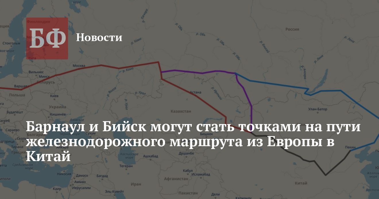 Один из трех маршрутов трассы высокоскоростной железнодорожной магистрали из Китая в Европу пройдет через Барнаул и Бийск. Но для этого надо будет пробить тоннель через алтайские горы. Об этом сообщает «Алтапресс» со ссылкой на выступление первого вице-президента «Российских железных дорог» (РЖД) Александра Мишарина на всероссийском съезде железнодорожников.