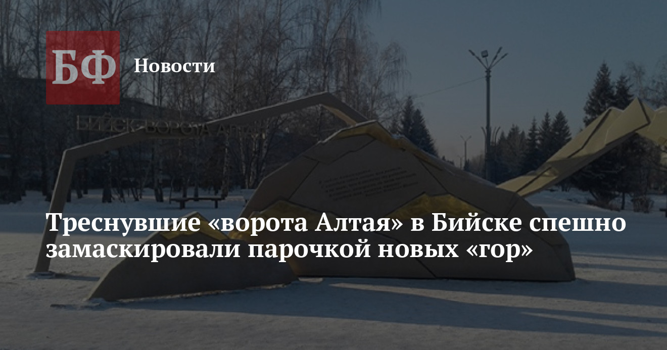 Известно, что почти сразу после открытия «ворот Алтая» администрация города направила в адрес подрядчика предписание с требованием до 20 декабря устранить недочеты на арт-объекте. В частности, речь шла о трещине, проходящей через всю плиту основания со стороны, обращенной к бульвару. В таком виде «горы» были установлены изначально и простояли еще полтора месяца после открытия.