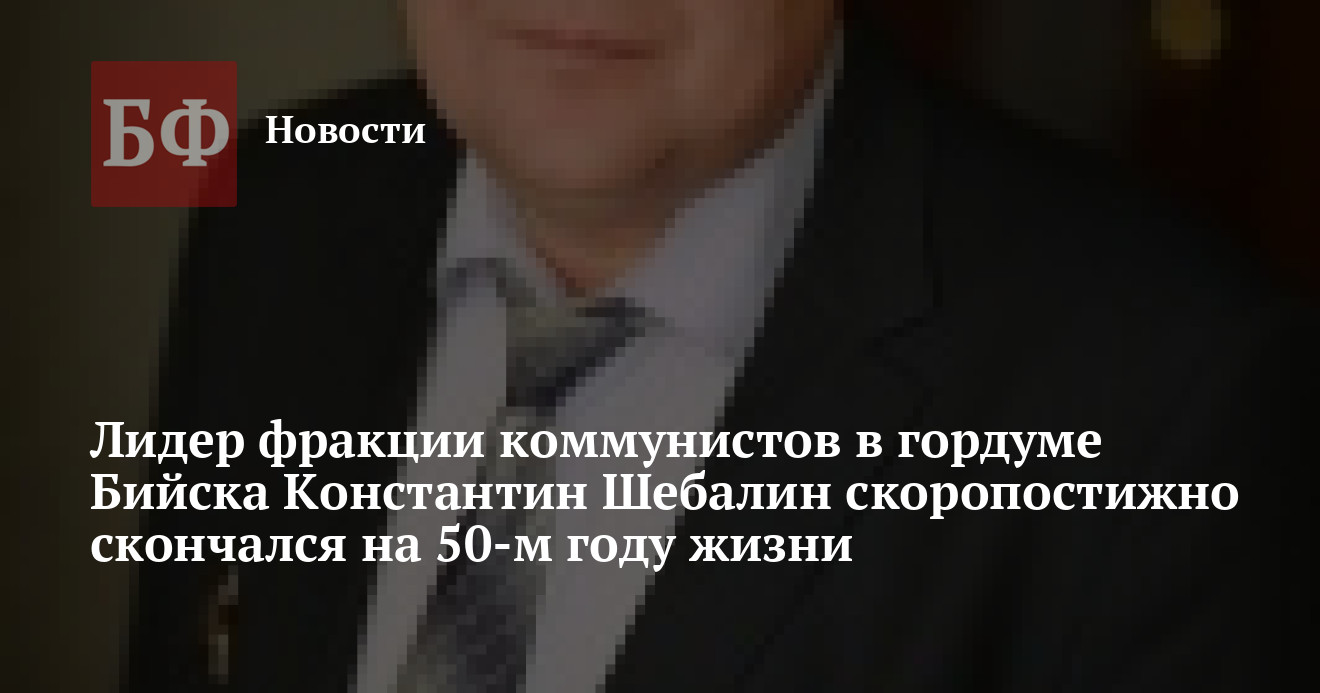 Лидер фракции КПРФ и зампред гордумы Бийска, бывший депутат Алтайского Заксобрания Константин Шебалин скончался 2 января на 50-м году жизни. Об этом в соцсетях сообщили его близкие, коллеги по партии, а также представители аппарата АКЗС.