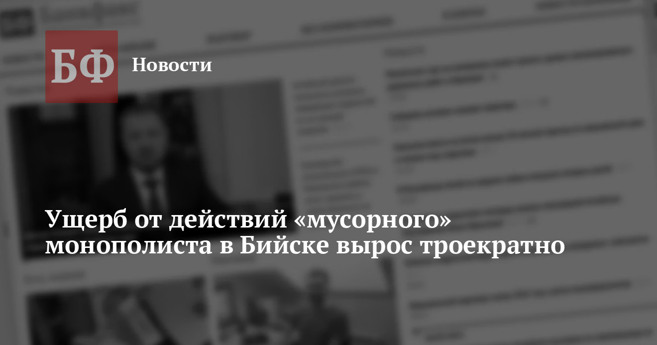 Прокуратура вынесла обвинительное заключение по делу учредителя бийской фирмы-монополиста по вывозу мусора ООО «Единая городская служба ТБО» Сергея Башкатова. Об этом со ссылкой на «Бийское телевидение» сообщил «Бийский рабочий».