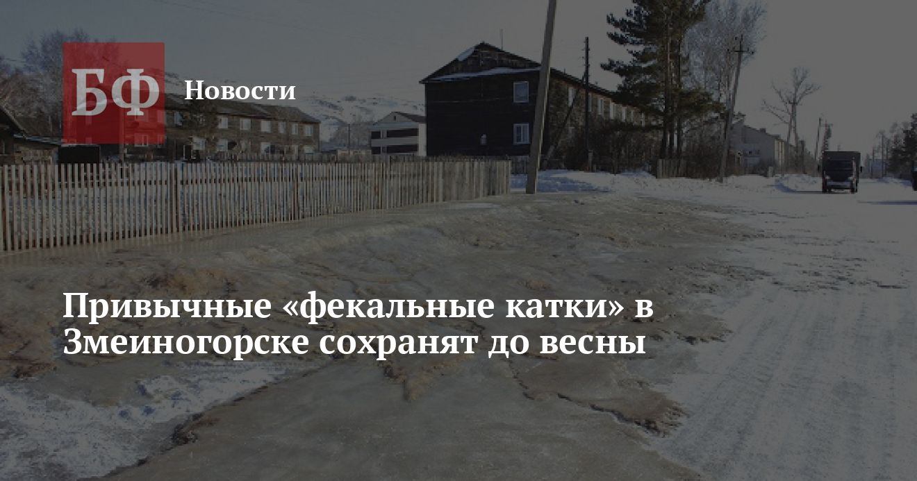 Фотографию необычной «ледовой площадки» опубликовал сайт газеты «Змеиногорский вестник»: содержимое выгребных ям, вылившееся на поверхность, застыло толстым слоем льда на дороге и тротуаре. По словам сотрудников газеты, снимок был сделан 5 февраля 2018 года, и это не единственное место в городе с такой проблемой.