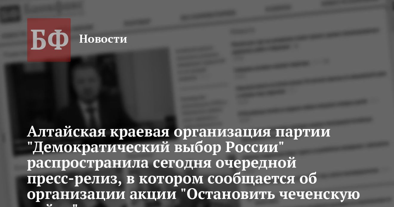 Краевая организация партии «Демократический выбор России» и комитет солдатских матерей организовали в Алтайском крае по примеру нижегородского губернатора Бориса Немцова сбор подписей под обращением к президенту «Остановить чеченскую войну», который будет продолжаться до 20 февраля.