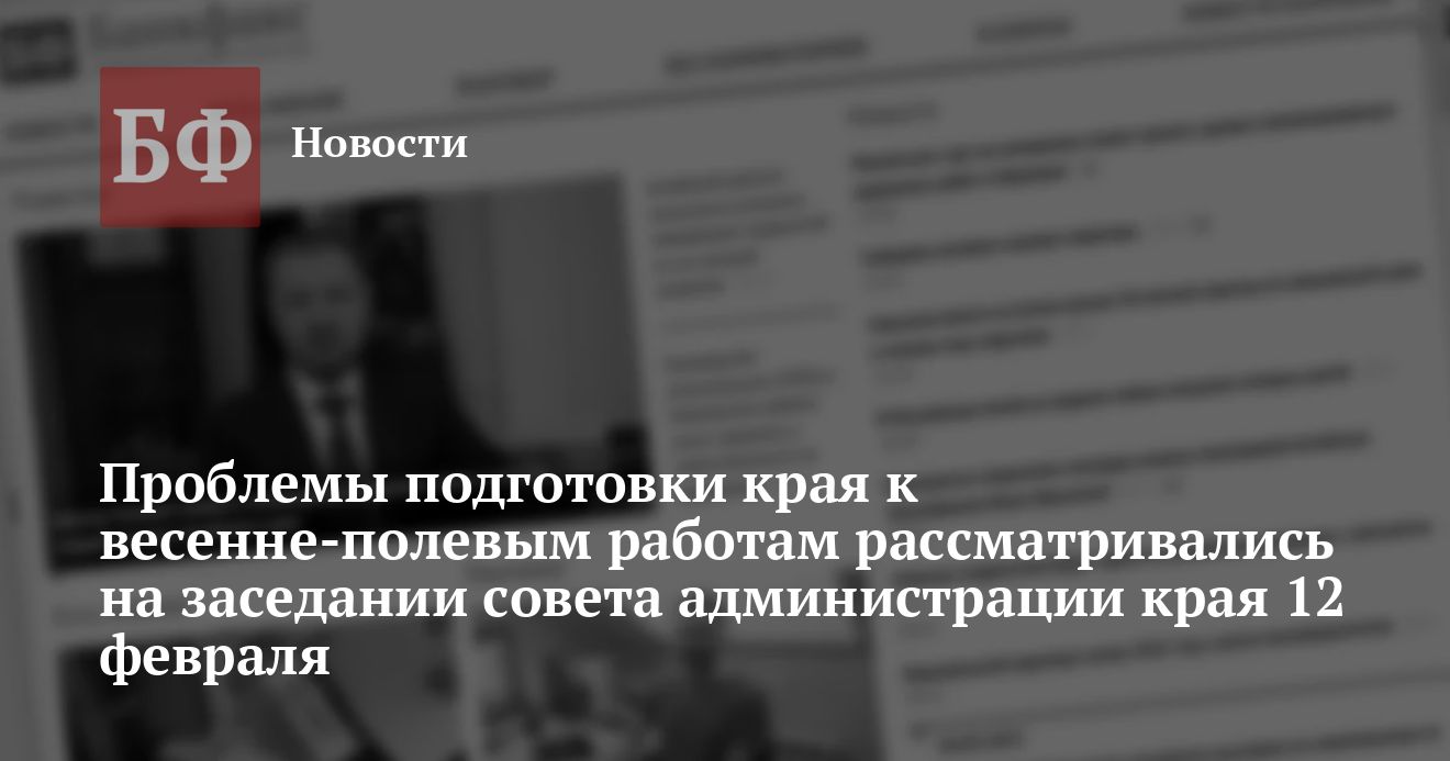 Решением Совета администрации создана рабочая группа по подготовке края к весенне-полевым работам под председательством заместителя главы администрации Павлом Ефремовым. 13 февраля участники группы начали проработку всех возможных вариантов финансового обеспечения весенне-полевых работ.