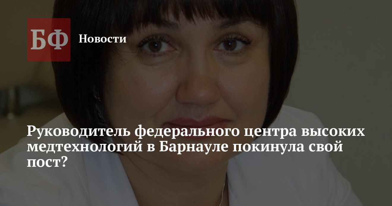 Главный врач ФГБУ «Федеральный центр травматологии, ортопедии и эндопротезирования» в Барнауле Людмила Григоричева якобы лишилась своей должности. Об этом ИА «Банкфакс» сообщило несколько источников в сфере здравоохранения.