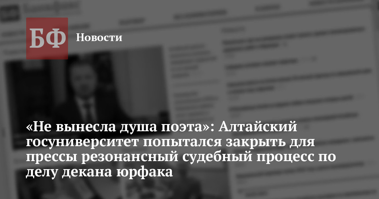 16 февраля в ходе очередного судебного заседания по делу опального декана юрфака АлтГУ Натальи Карловой представители вуза ходатайствовали о том, чтобы исключить присутствие прессы на рассмотрении дела. Формальный повод — беспокойство о разглашении информации о частной жизни своего оппонента.