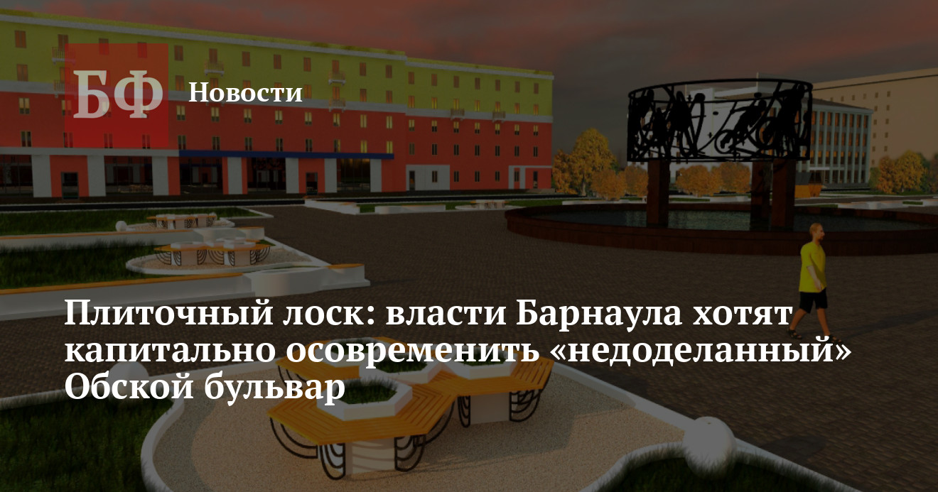 Как отмечается в сообщении на сайте администрации Барнаула, Обской бульвар начали создавать еще в середине XX века, однако предусмотренного проектом вида он так и не получил, не выйдя, вопреки названию, к берегам Оби. Наконец, в ближайшие годы с «недоделанным» бульваром могут разобраться. «Необходимость реконструкции и дополнительного благоустройства пешеходной зоны на Обском бульваре, придания ей законченного внешнего вида обусловлена близостью к проспекту Ленина, главной транспортной артерии и архитектурно-планировочной оси города», — указано в сообщении.