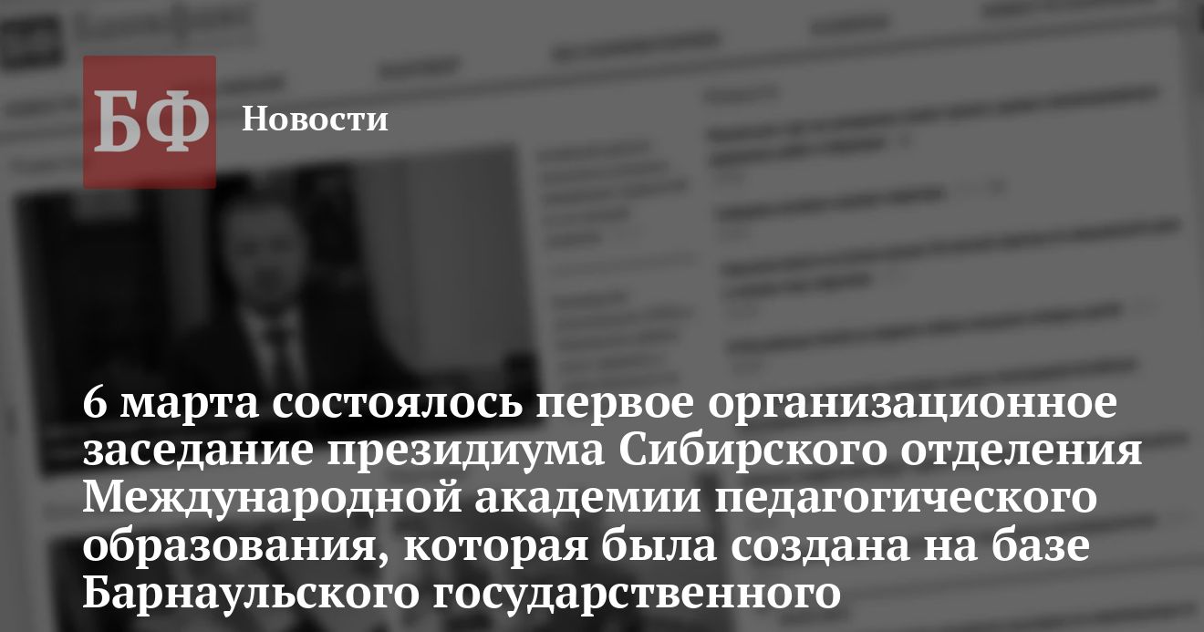 Провел заседание академик-секретарь СО Международной академии педагогического образования, ректор БГПУ Василий Гончаров. В состав Президиума вошли научные сотрудники педагогического университета, а так же ректоры новосибирского, читинского и омского педагогических вузов.