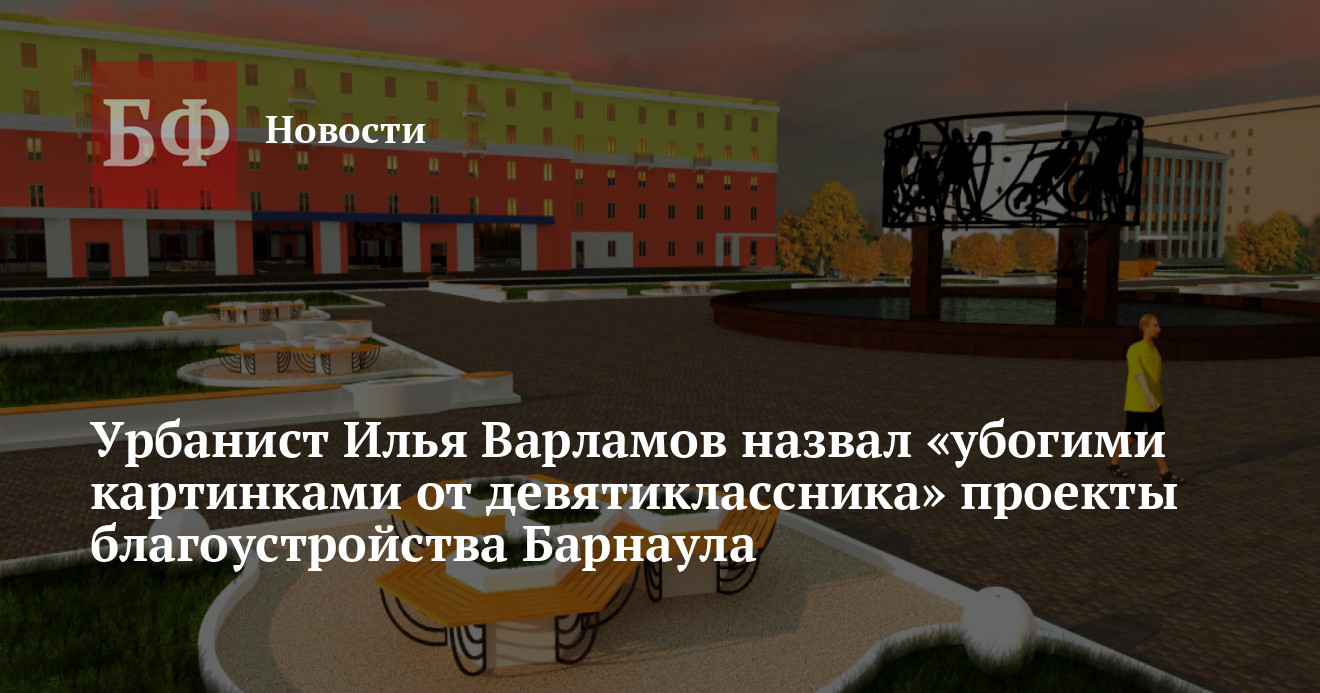 Илья Варламов в своем посте сходу начал говорить об «убожестве» представленных барнаульцам проектов. «Не успели мы посмеяться над проектами благоустройства, которые реализовывались в прошлом году, как подоспели новые картинки. Что нам готовит год 2018. На сайте администрации Барнаула выложили свои планы по благоустройству города. И глядя на эти картинки, можно только обхватить голову руками и грустно смотреть в бездушный экран монитора. Если коротко — это провал и позорище», — считает блогер.