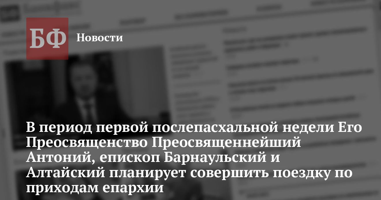 План поездки включает в себя посещение бийского благочиния, с совершением литургии в Успенском соборе г. Бийска и богослужение в храме святителя Дмитрия Ростовского. Посещение горно-алтайского благочиния (Республика Алтай), поездку в белокурихинское, смоленское благочиние, посещение Казанского мужского монастыря в селе Коробейниково Усть-Пристаньского района. Владыка Антоний побывает также в г. Рубцовске, где совершит богослужение в Михайлово-Архангельской церкви, а также Литургию в архирейском Подворье г. Рубцовска. Пасхальный молебен отслужит Владыка также в Поспелихе, Шипуново и посетит Свято-Димитриевский монастырь г. Алейска.