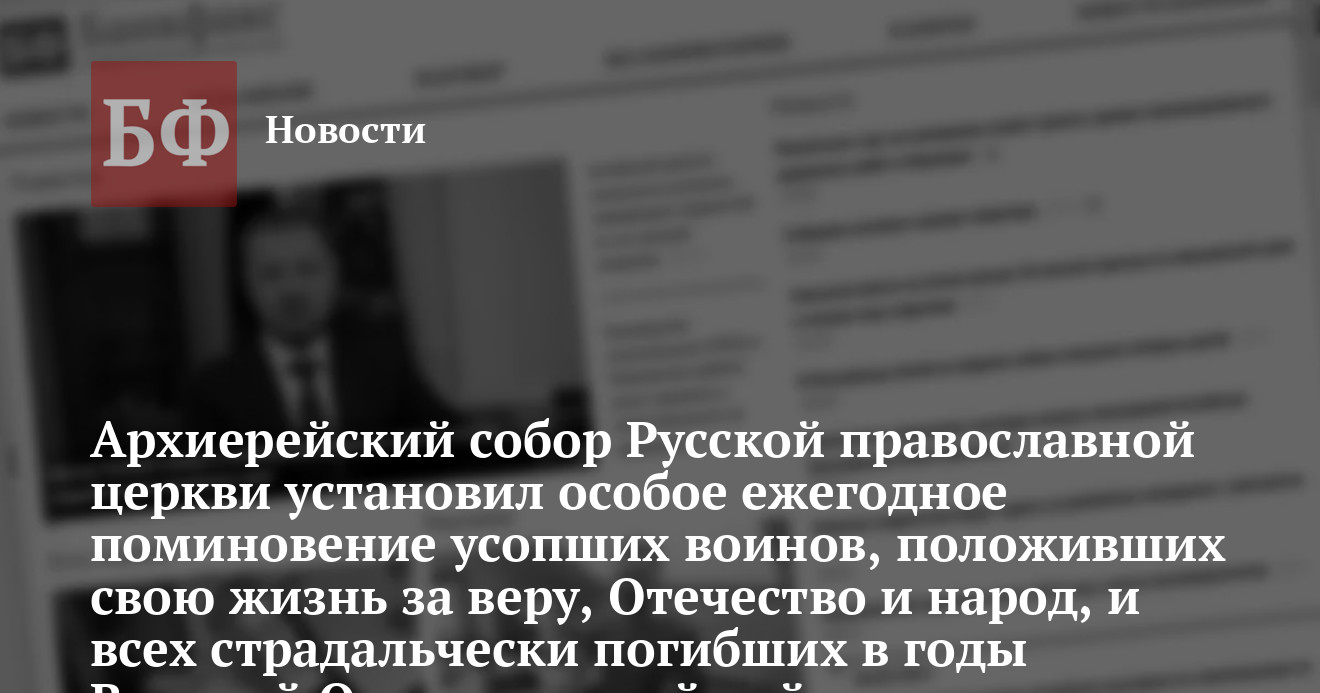 Руководствуясь священным долгом молитвы о воинах, жизнь свою положивших на поле брани, равно как и о всех людях, погибших от рук интервентов, замученных в плену и концентрационных лагерях, принявших страдальческую кончину вследствие тяжести военного времени освященный архиерейский собор определяет день ежегодного поминовения усопших в день Победы 9 мая.