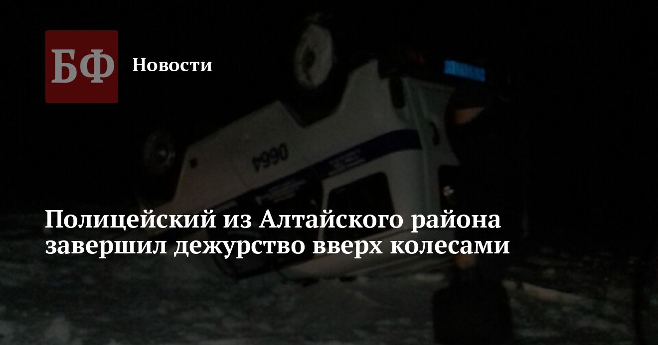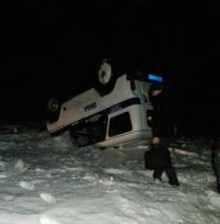 Патрульный автомобиль в ходе выполнения служебной задачи съехал с трассы в кювет и, перевернувшись, встал на крышу. Находившийся за рулем сотрудник ППС ОМВД России по Алтайскому району не пострадал. Как сообщают в пресс-службе ведомства, водитель не был пьян, он просто не справился с управлением. Сейчас по данному факту назначена служебная проверка.