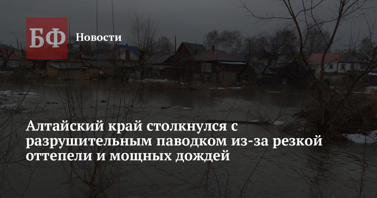 Первые признаки надвигающегося паводка стали очевидны еще 23 марта, когда температура воздуха, к примеру, в Барнауле резко поднялась с отрицательных значений до +13 градусов. Тогда горожане начали выкладывать в сообществе Barnaul 22 «ВКонтакте» свидетельства крайне сложной ситуации. Так, резкое снеготаяние привело к подтоплению низин: неподалеку от реки Пивоварки воды скопилось столько, что она вплотную начала подбираться к расположенному неподалеку частному сектору. По словам очевидцев, вода скопилась в том числе потому, что русло реки оказалось забито. Уже к вечеру того же дня подтопило первые этажи домов, подполы и сараи. Испорчены оказались мебель и техника, у некоторых жильцов утонули животные. Вода прибывала на глазах.