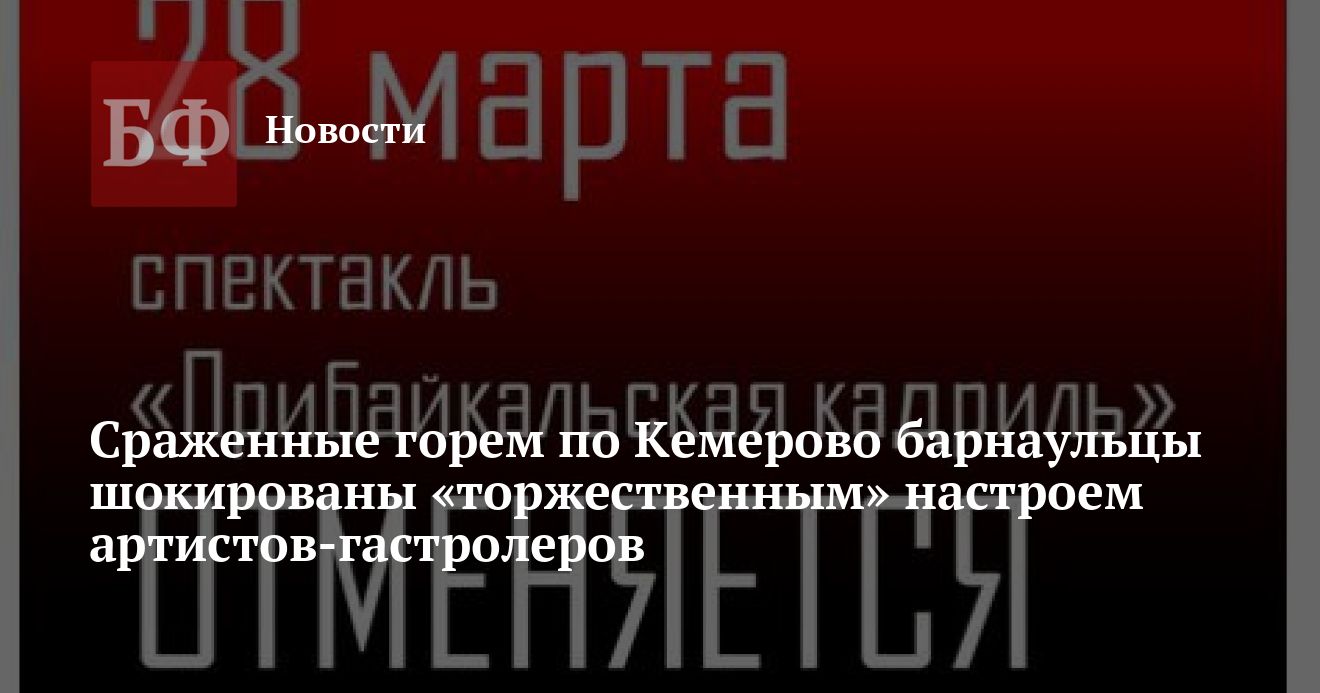 Объявленный на 28 марта общенациональный траур по жертвам трагедии в Кемерово, где при пожаре в ТРЦ «Зимняя вишня» по официальным данным погибло 64 человека, в том числе 41 ребенок, не оставляет барнаульцев равнодушными. Горожане удивлены тому, что вопреки пожеланию президента и здравому смыслу далеко не все развлекательные мероприятия в этот день отменены. В редакцию ИА «Банкфакс» обратился читатель, который эмоционально рассказал об одном из таких случаев.