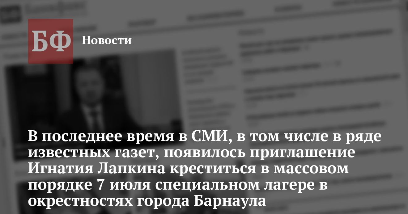 В связи с этим пресс-служба Барнаульского епархиального управления уполномочена со всей ответственностью заявить, что Барнаульская и Алтайская епархия Русской православной церкви не имеет к этому массовому крещению никакого отношения. Более того, пресс-служба заявляет, что такой обряд крещения должен проводиться лицом, принадлежащим к лиру Русской православной церкви. Как известно, Игнатий Лапкин не является священником русской православной церкви.