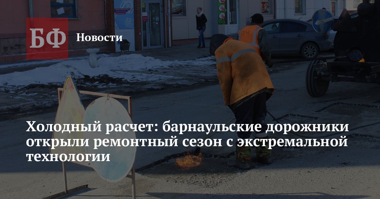 Барнаульская дорожная служба открыла строительный сезон ремонтом нескольких участков дорог холодным асфальтобетоном. Эта современная технология позволяет производить ямочный ремонт покрытия при окружающей температуре до -10 градусов. Это несколько шокировало барнаульцев, однако городские чиновники объяснили, что все нормально.