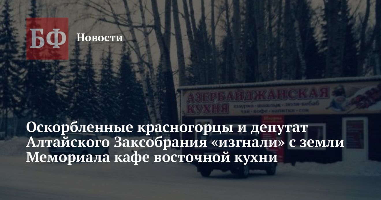 Победой жителей села Красногорское закончилось их противостояние с кафе «Азербайджанская кухня», которое работало рядом с площадью Победы и Мемориалом. Люди были недовольны тем, что в точке общепита нет санузла, и гости выходят справлять нужду прямо на улицу. Разбираться с ситуацией им пришлось при помощи депутата Алтайского Заксобрания Ивана Дубинина (ЛДПР), указано на сайте АКЗС.