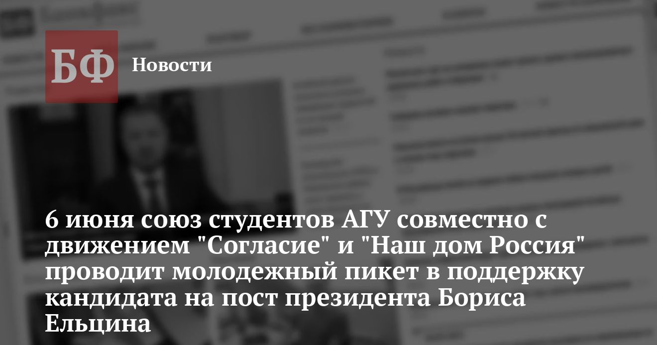 6 июня союз студентов АГУ совместно с движением «Согласие» и «Наш дом Россия» проводит молодежный пикет в поддержку кандидата на пост президента Бориса Ельцина
