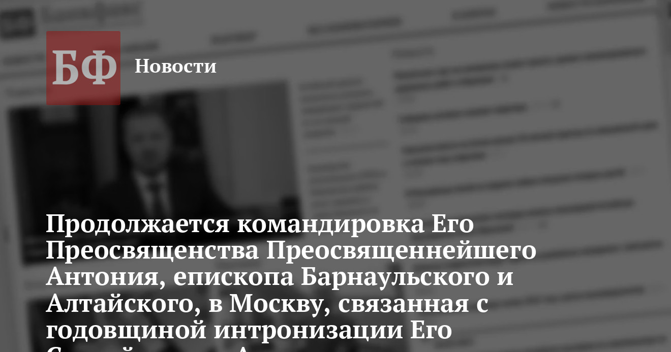 Продолжается командировка Его Преосвященства Преосвященнейшего Антония,епископа Барнаульского и Алтайского,в Москву,связанная с годовщиной интронизации Его Святейшества Алексия,патриарха Московского и всея Руси