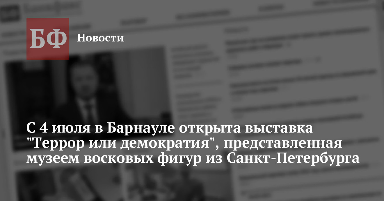 Выставку проводит Государственный художественный музей Алтайского края. В выставке представлено 27 фигур российских, советских и зарубежных политических деятелей и других известных личностей различных времен. Среди них Лев Толстой, Александр II, Николай II, церевич Алексей, Карл Маркс, Петр Столыпин, Лев Троцкий. Кроме того, посетители выставки смогут увидеть выполненные в натуральную величину фигуры Владимира Ленина, Михаила Фрунзе, Нестора Махно, Иосифа Сталина, Лаврентия Берии, Никиты Хрущева, Андрея Сахарова и других. Выставка продлит свою работу до конца июля.