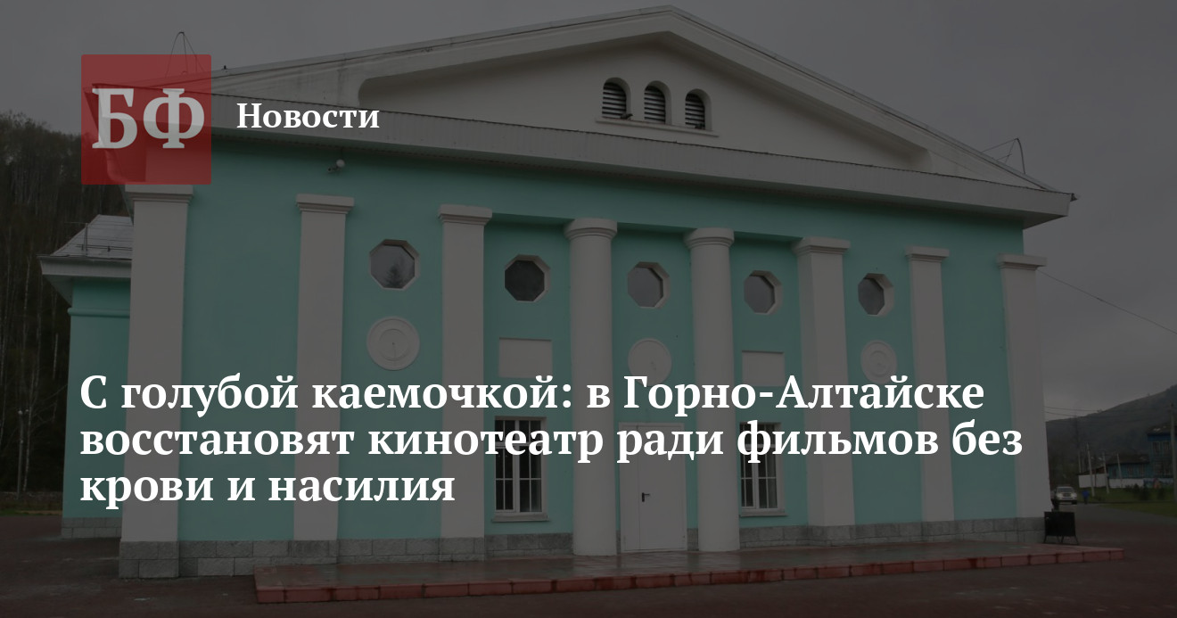 В Горно-Алтайске начинается проект по восстановлению построенного в 1960-е годы кинотеатра, который в новейшее время оказался заброшен. Кинозал «Голубой Алтай» восстановят на средства целевого федерального гранта. По словам главы региона Александра Бердникова, там будут показывать в том числе качественные российские новинки и советскую классику, сообщается на сайте правительства республики.