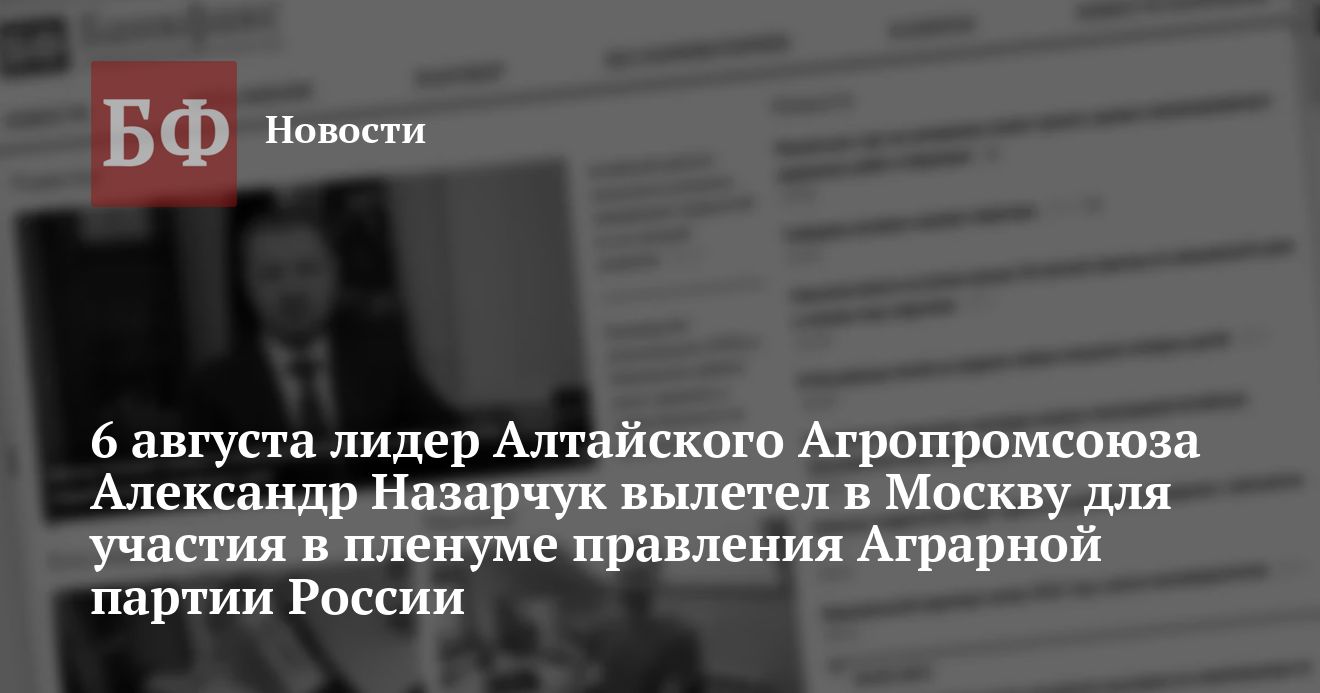 Как сообщил один из руководителей краевой организации АПР Виктор Фоминых, на пленуме будет обсуждаться позиция российских аграрников в составе движения народно-патриотических сил России. Кроме того, на пленуме встанет вопрос о выдвижении Александра Назарчука на пост губернатора Алтайского края. По мнению ряда активистов АПР, возможно, что при поддержке своей партии Александр Назарчук в Москве попытается на законных основаниях преодолеть ценз оседлости, мешающий ему принять участие в губернаторских выборах. Правда, до нынешнего дня Александр Назарчук официально не заявлял о своем выдвижении.