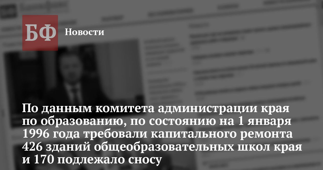 По данным комитета администрации края по образованию, по состоянию на 1 января 1996 года требовали капитального ремонта 426 зданий общеобразовательных школ края и 170 подлежало сносу