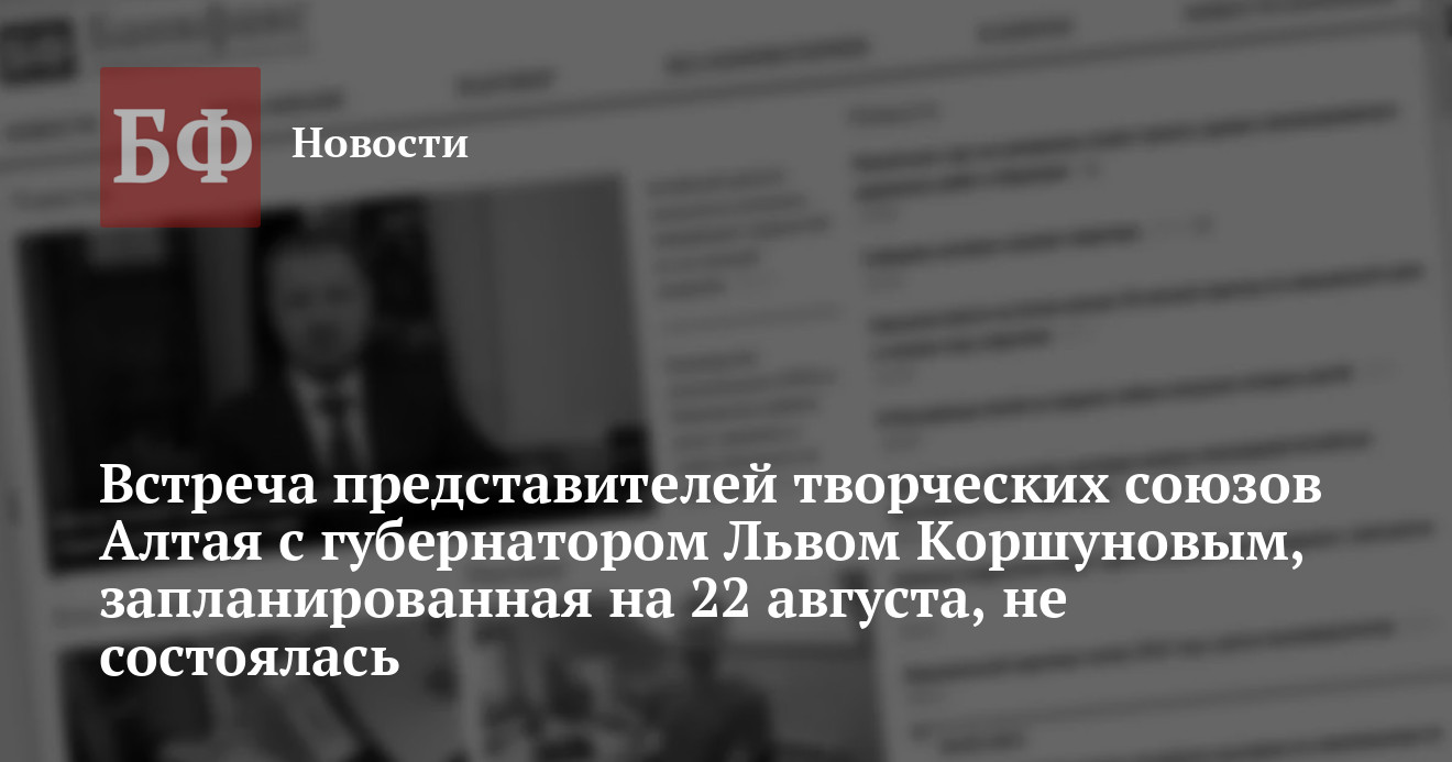 На встрече с губернатором представители творческих союзов были намерены передать письмо, написанное на имя главы краевой администрации Льва Коршунова, председателя краевого Законодательного собрания Александра Сурикова и главы администрации города Барнаула Владимира Баварина. Эта встреча должна была стать первой в ряду встреч, которые намерены провести представители творческих союзов с руководством краевых и городских органов власти. По словам сотрудников Алтайского Союза театральных деятелей, в понедельник, 26 августа, представители творческой интеллигенции намерены встретиться с Владимиром Бавариным, с тем, чтобы передать ему подготовленное письмо.
