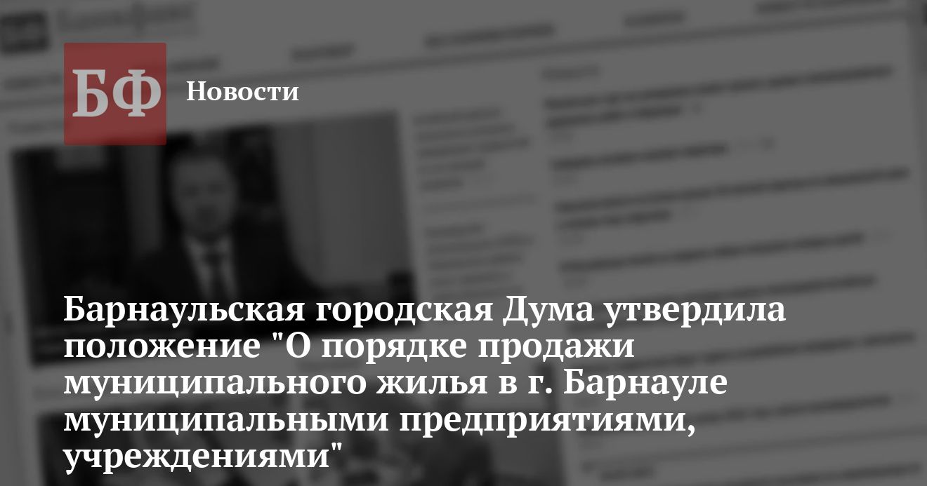 Положение было разработано комитетом по управлению имуществом администрации Барнаула. Документ преследует цель упорядочения реализации домов и квартир муниципального жилого фонда в условиях дальнейшего развития рыночных отношений в жилищной сфере. По Положению подлежат продаже квартиры, являющиеся муниципальной собственностью, поступившие в хозяйственное ведение муниципальных предприятий после приобретения за счет средств фонда социального развития или через взаиморасчет. Если же жилье перешло в муниципальную собственность в порядке наследования, то данное Положение на него не распространяется.