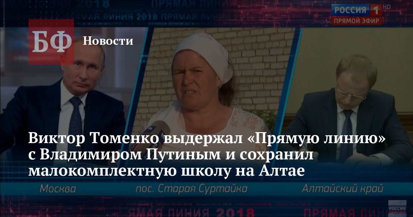 Президент вывел на прямую связь врио губернатора Алтайского края Виктора Томенко и узнал у него, что действительно планируется делать с объектом. «Школа является филиалом, она действительно малокомплектная, есть вопросы по комплектования преподавательским составом. Тем не менее, в планах нет ее закрытия. Вероятно, какой-то сбой информации прошел на уровне муниципальных руководителей, которые собирались на сход. Я пока делаю первые шаги в крае по вниканию в процессы, но эту ситуацию с органами местного самоуправления, и, самое главное, с жителями села проведу. И вопрос будет решен: у школы есть будущее, и у села есть будущее», — заявил глава региона.