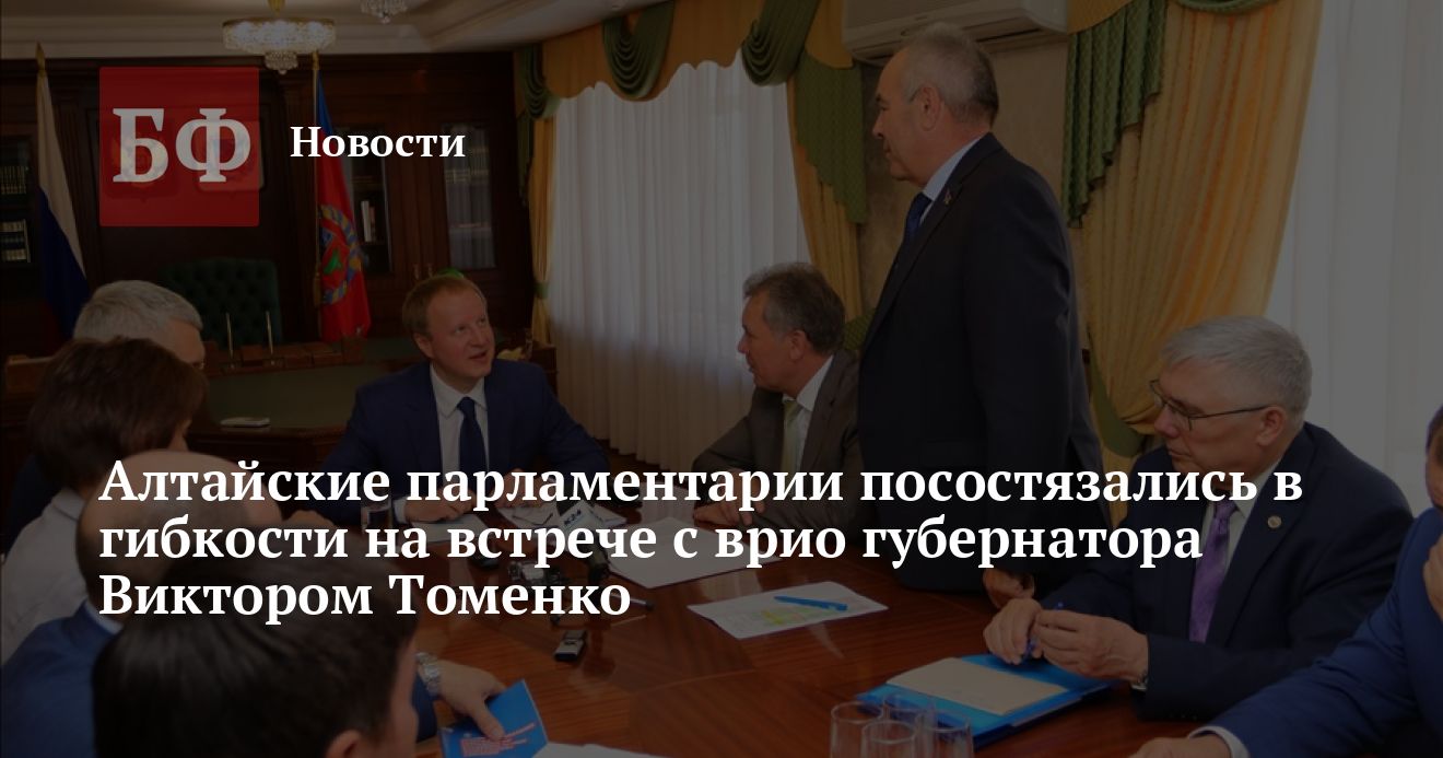9 июня врио губернатора Алтайского края Виктор Томенко встретился с руководителями комитетов и фракций Алтайского Заксобрания. Он пообещал работать со всеми политическими силами, представленными в региональном парламенте, а «политические силы» в ответ продемонстрировали чудеса толерантности и лоббизма.
