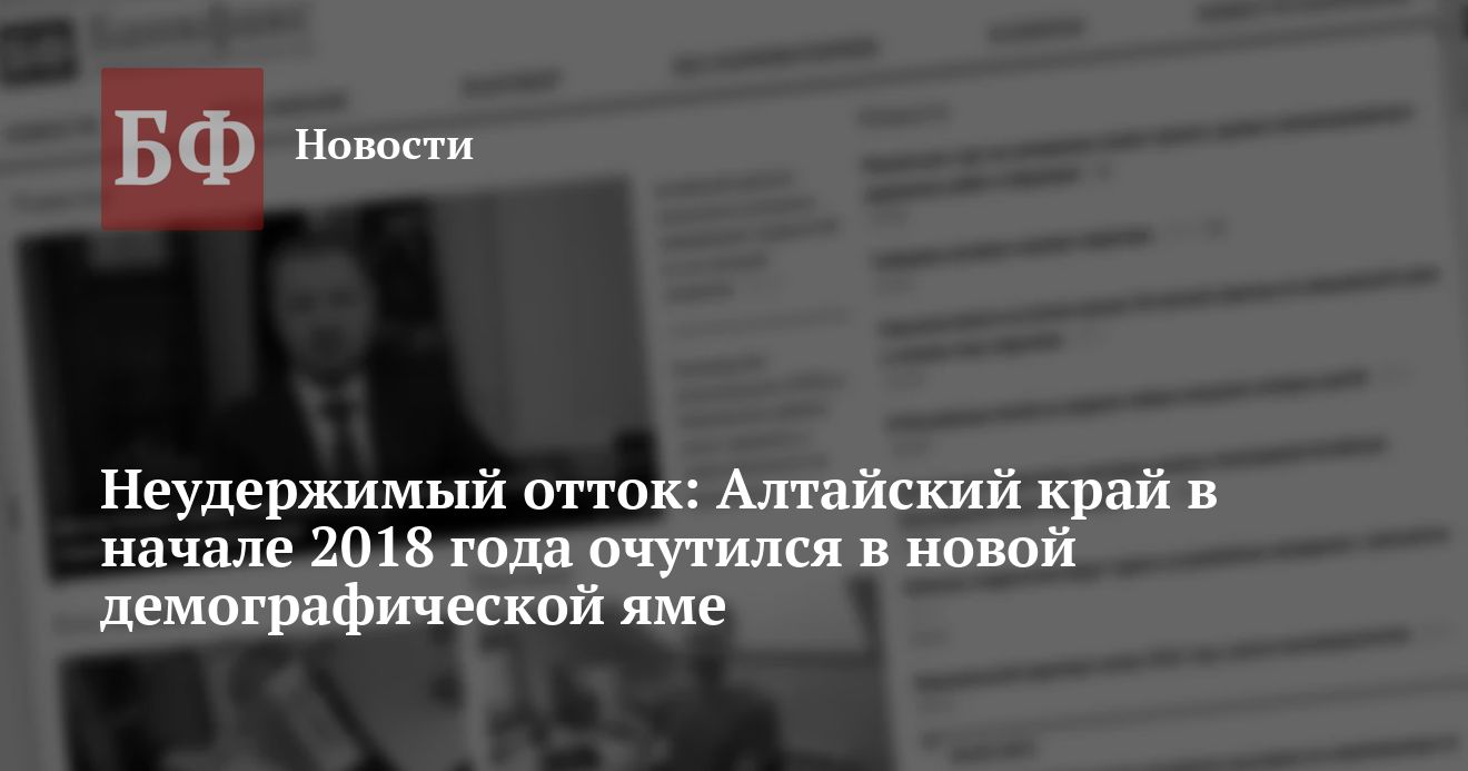В I квартале 2018 года Алтайский край оказался в одной из худших демографических ситуаций в Сибирском федеральном округе: в регионе усугубилась тенденция к снижению рождаемости, росту миграции и числа разводов. Впрочем, почти вся остальная Сибирь также следует этому тренду, пусть и в меньшей степени, сказано в отчетах Новосибирскстата.