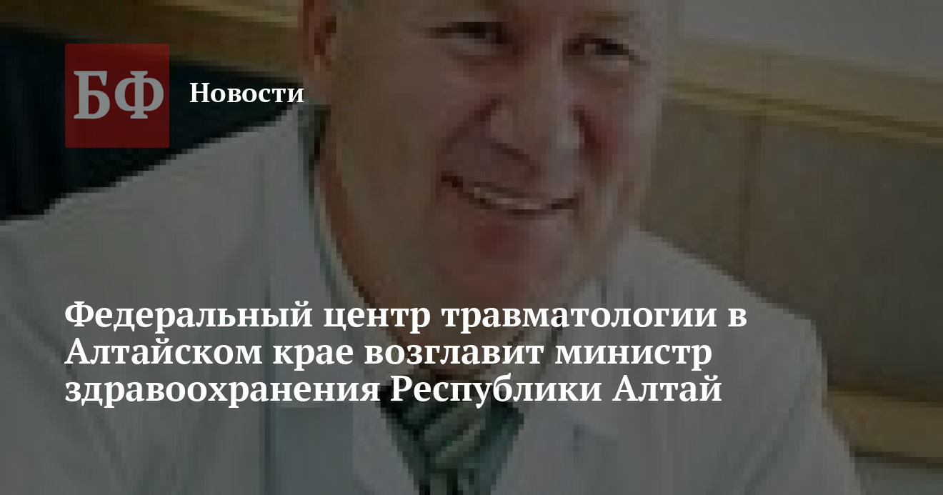 Министр здравоохранения Республики Алтай Владимир Пелеганчук, большая часть профессиональной карьеры которого прошла в Алтайском крае, скоро вернется в регион. Как сообщили источники ИА «Банкфакс», Минздрав России согласовал его на должность главного врача Федерального центра травматологии, ортопедии и эндопротезирования, расположенного в Барнауле.