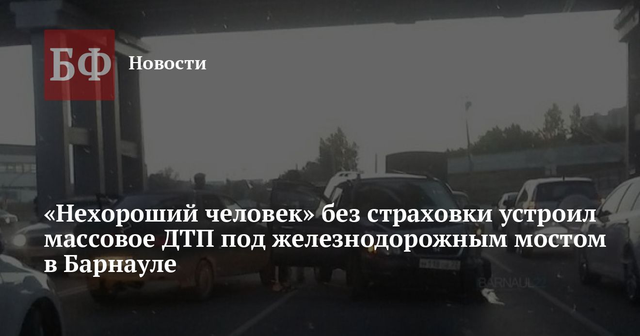 Инцидент произошел вечером 16 июля под железнодорожным мостом, на стыке проспекта Строителей и Павловского тракта. По словам участников аварии, водитель за рулем Honda, очевидно, не рассчитал скорость и на повороте «собрал» ВАЗ-2110, ВАЗ-2106, Nissan X-Trail и Toyota Camry. У места ДТП сформировалась достаточно длинная пробка. «Ребенок шести лет напугалась так, что я всю ночь потом успокаивала. Больше всего досталось мужу — у авто левый руль. Эта ***** (насекомое), просто вывалился из машины, он пьяный был вусмерть! Я ему говорю, в переводе на приличный язык: „Ты, плохой человек, зачем пьяный за руль сел?“ — а тот плечами пожал и даже промычать в ответ был не в состоянии. Мимо проезжали автомобилисты и сказали, что он с такой скоростью просто скрывался с места аварии на Павловском тракте, так что на его счету за вчерашний день не только четыре авто под мостом. Нашу машину увезли на эвакуаторе, когда мы ее увидим снова неизвестно! У этого ***** (нарушителя) нет страховки», — пожаловалась в комментариях Ирина Подскребкова.