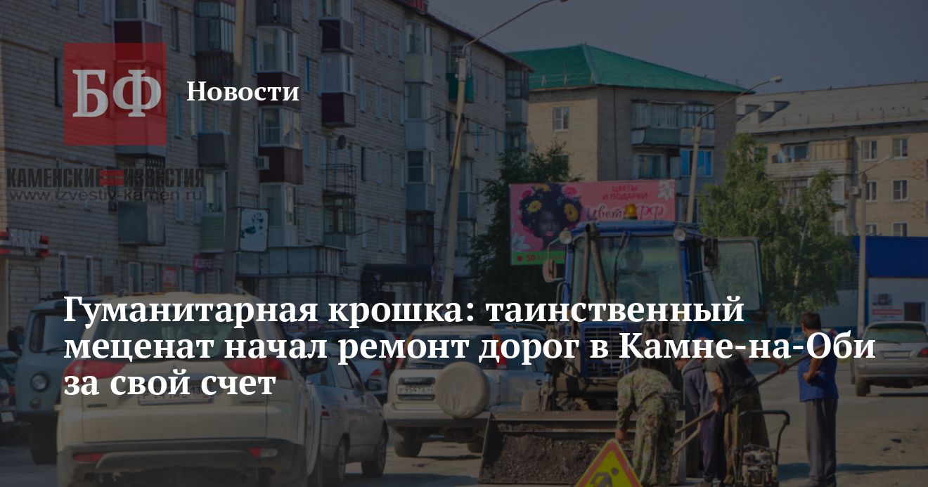 Утром 20 июля бригада неизвестных рабочих приступила к ямочному ремонту дорог в Камне-на-Оби. Их работу не обеспечивает городской бюджет, им платит предприниматель из соседнего села, который пожелал остаться неизвестным. Впрочем, работники и сами рады помочь городу хотя бы частично справиться с застарелой проблемой. О ситуации пишут «Каменские известия».